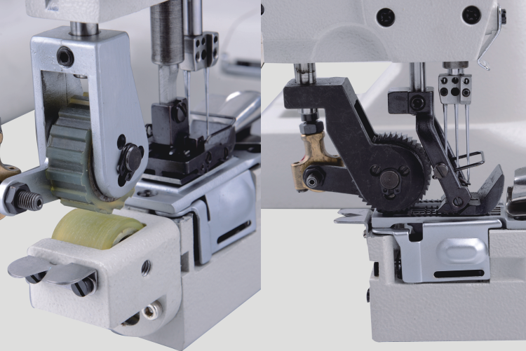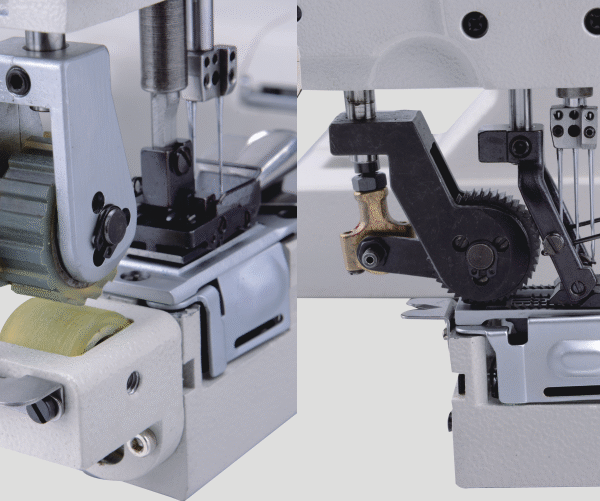 Máy được trang bị lô kéo trợ lực, giúp làm phẳng đường may, k bị giúm vải, tạo ra sản phẩm chất lượng cao.