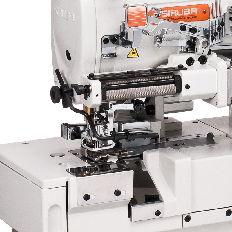 Chạy qua thiết bị tiếp liệu, kiểm soát độ dài và sức căng, thiết bị sửa vải bằng dao xén trái, có thể chỉnh sửa vải gọn gàng , giúp nâng cao chất lượng may hơn, ví dụ: may dây thun quần lót hoặc dây thun ren.